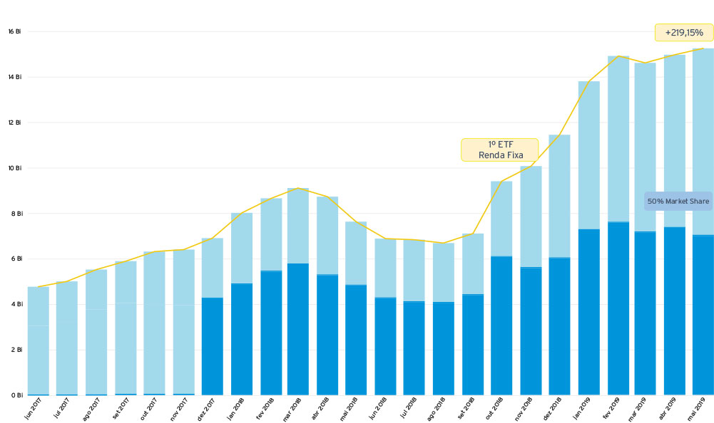 Com o novo cenário econômico brasileiro, surge a necessidade de diversificação, e os investimentos em ETFs, fundos listados e negociados em bolsa de valores, estão em alta. Neste ambiente, com a queda da taxa de juros, as ações podem se beneficiar, e o investimento em ETFs passou a ganhar maior visibilidade no mercado brasileiro, oferecendo baixos custos e transparência. Em maio de 2018, o patrimônio dos fundos ETFs registravam o valor de R$ 7,6 bilhões. Na última publicação da Anbima, em maio de 2019, atingiu o valor de R$ 15,2 bilhões, com um aumento de 199% em 12 meses.